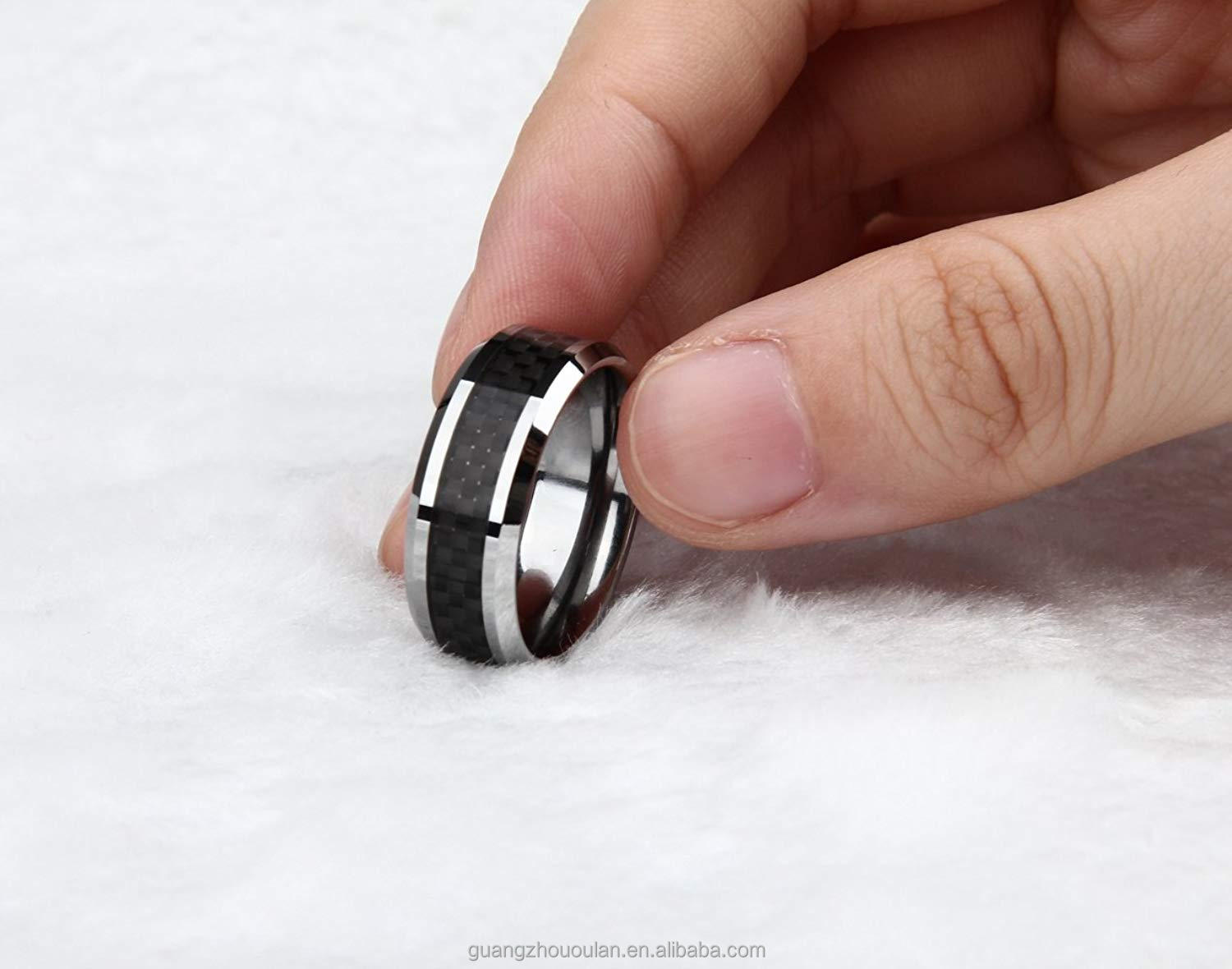 Be unstoppable with this 8mm Men's Titanium Ring. With black carbon fiber inlay and beveled edges, you'll stand out in any room. Take on life with confidence and in style in this cool, comfort-fitting wedding band for men - sizes 6-13.