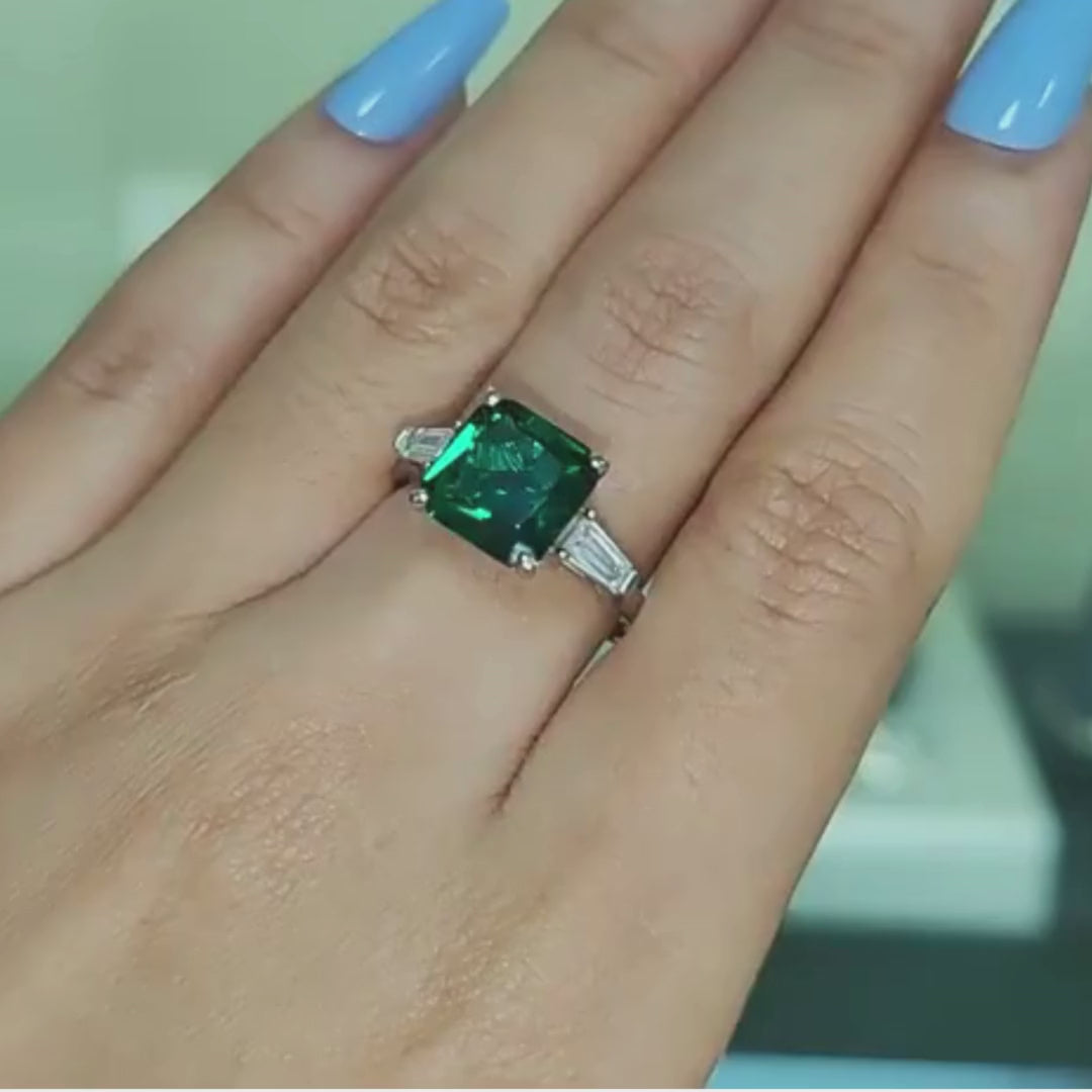 Indulge in the beauty of our Madelyn lab-grown emerald ring. Crafted from 925 sterling silver and plated with 3 layers of rhodium, this stunning ring features a lab-grown emerald centerpiece and sparkling cubic zirconia. A perfect addition to your collection or a beautiful engagement ring.