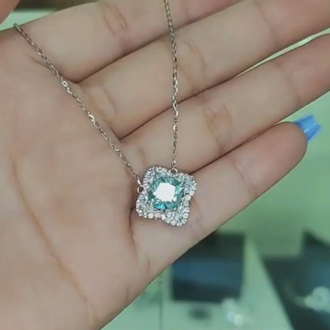 Our Megan aquamarine necklace features a beautiful flower-shaped pendant made of 925 sterling silver. The centerpiece is a stunning lab-grown aquamarine, ethically sourced and surrounded by sparkling cubic zirconia. With its elegant design and sustainable gemstone, this necklace is a timeless addition to any jewelry collection.